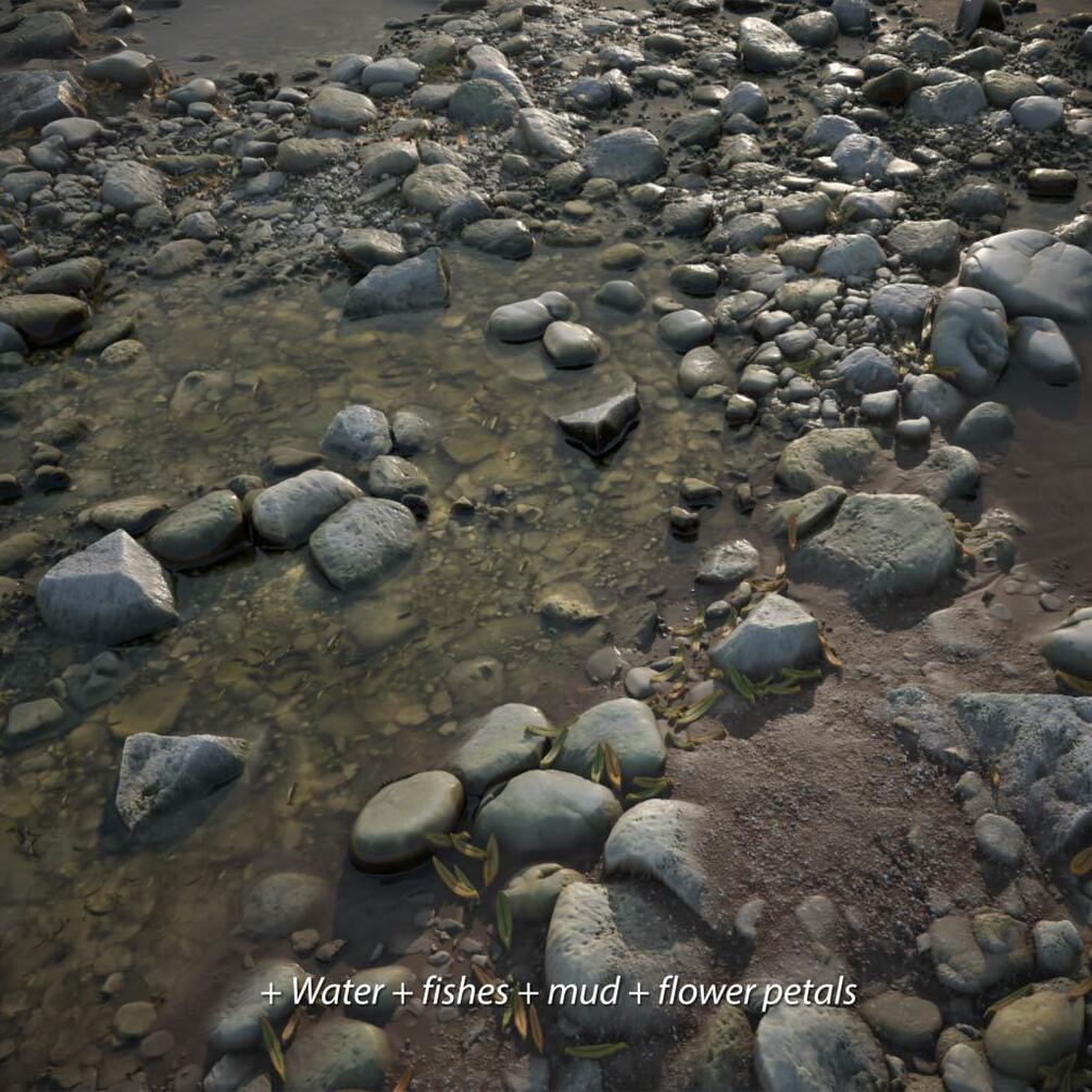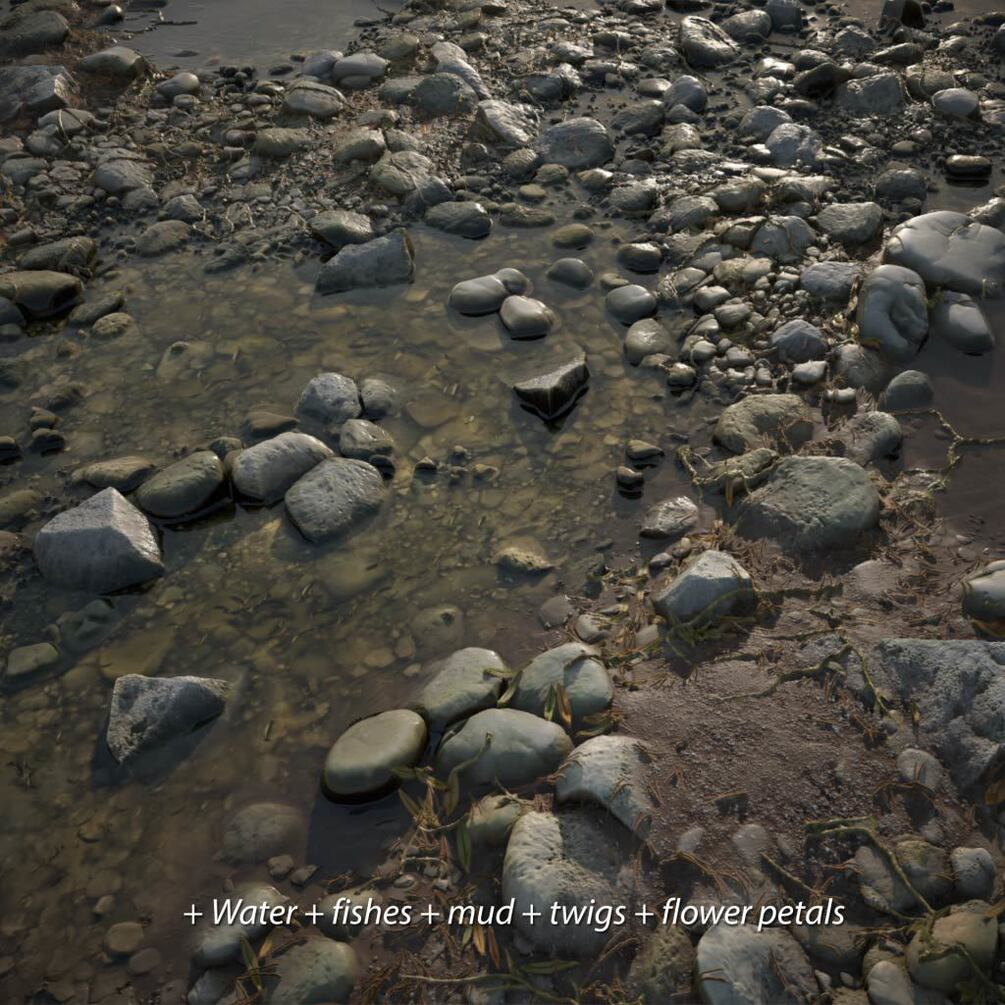 * Substance Designer 2018 graph of a full 100% Substance Designer made Biotope with fishes, twigs, water, mud and stones.
