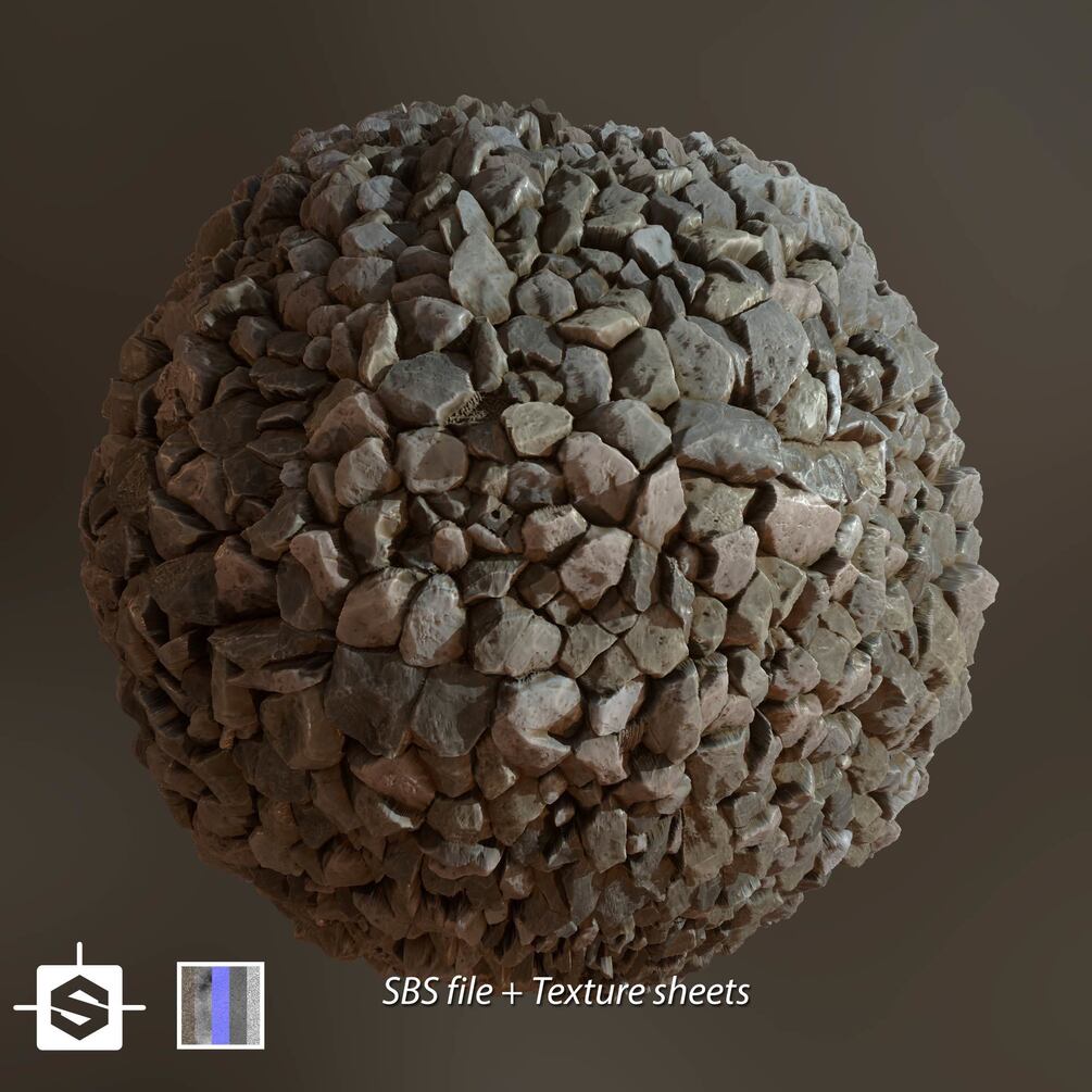 * Substance Designer graph of a typical Hard sharp rock field that can be found at train rails. Two single graph.